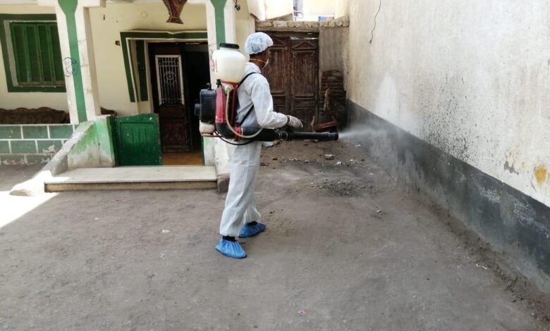 إستمرار أعمال رش وتطهير الشوارع والمنشآت بمدن ومراكز المحافظة .
