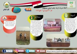 كما عقدت مديرية الزراعة بمحافظة أسيوط، اجتماع مع مديري الادارات الزراعية والتعاونية ومسئولي حماية الأراضي والمكافحة بالإدارات الزراعية، لمناقشة عددا من الموضوعات، على رأسها موقف توريد القمح، اعمال حماية الأراضي، وموقف الاسمدة ومدى توافرها بمخازن الجمعيات، موقف محصول الرمان، كذلك اعمال المكافحة ومتابعة الاجراءات مع زراعات الذرة، كذلك نفذت مديرية الطب البيطري بسوهاج، قافلة بيطرية علاجية، بقرية الفراسية مركز ساقلته وتم علاج عدد كبير من الحالات وتم تشخيص عدد كبير من حالات التناسلية باستخدام جهاز السونار، كما تم تجريع عدد كبير من الحيوانات ضد الطفيليات الداخلية كما تم رش عدد كبير من الحيوانات ضد الطفيليات الخارجية بالإضافة إلى الدور الارشادي للمربين عن كيفية حماية حيواناتهم ووقايتها من الأمراض المختلفة.