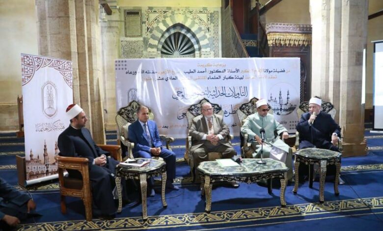 نظمت الأمانة العامة لهيئة كبار العلماء بالأزهر الشريف ملتقاها الحادي عشر تحت عنوان: “التأويلات الحداثية لنصوص الوحي وخطرها على الأمن المجتمعي”، وذلك في رحاب الجامع الأزهر، بحضور أ.د حسن الصغير ، الأمين العام لهيئة كبار العلماء، وأ.د عبد الفتاح العواري، عضو مجمع البحوث الإسلامية، وأ.د حسن وتد، أستاذ التفسير وعلوم القرآن بكلية أصول الدين، وأ.د خالد عبد العال، أستاذ العقيدة والفلسفة وعميد كلية أصول الدين فرع المنوفية، وعدد من قيادات الأزهر الشريف.