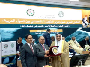 وأشار إلى ضعف التجارة العربية البينية، رغم ما تتمتع به الدول العربية من موارد والوحدة الجغرافية والمركز الاستراتيجي بين الشرق والغرب، موضحًا أنه من التحديات أمام وصول التجارة العربية للمستوى المأمول هو تشابه المنتجات بين الدول العربية، وتعطل الشحن، وغياب سلاسل قيمة عربية