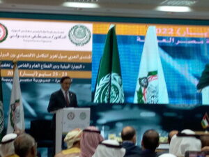 وأكد ضرورة التوافق على إيجاد سوق عربي بدون حواجز جمركية، وتنمية أهداف التجارة العربية البينية، مشيرا إلى تراجع التجارة العربية البينية في 2020، لظروف جائحة كورونا، وقال إن الأرقام والإحصاءات الصادرة لا تزال دون مستوى الطموح، بالإضافة إلى القيود الجمركية والاشتراطات والمواصفات والقيود الإدارية التي تعرقل التبادل التجاري بين الدول العربية والوصول لإقامة السوق العربية المشتركة ، وشدد على ضرورة تضافر الجهود لمواجهة هذه التحديات والإسراع باستكمال متطلبات التجارة العربية الحرة وتهيئة المناخ لزيادة التجارة العربية البينية، وإزالة العقبات، والتنسيق بين السياسات الاقتصادية للدول العربية، والاهتمام بدعم المؤسسات العربية الكفيلة بتنفيذ تعاون اقتصادي للوصول لتكامل اقتصادي.