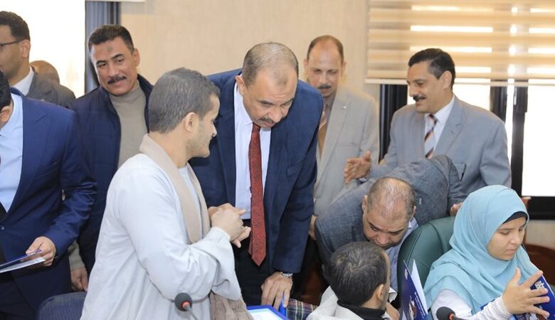 وبدأت الاحتفالية بخطوة عملية لدعم التمكين الاقتصادي، حيث قام المحافظ بتسليم 25 عقد عمل لذوي الإعاقة في القطاع الخاص، إلى جانب توزيع كراسي متحركة على المحتاجين