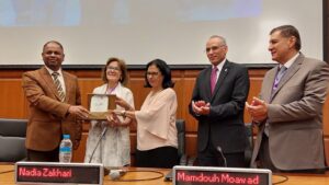 كما قام بتكريم د. إكرام فطين – رئيسة وحدة العلاج الإنزيمى للأمراض النادرة لجهدها المتواصل في رعاية المرضى والنظر إليهم بعين الأم التي تخاف على أبناءها.