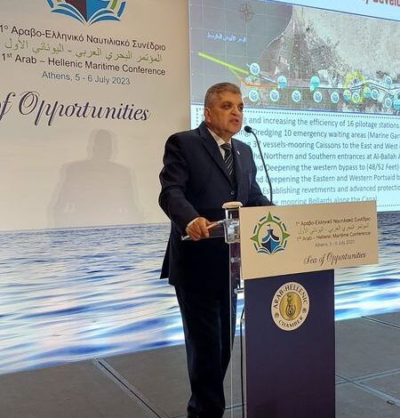 خلال مشاركته بالمؤتمر البحري العربي اليوناني الأول