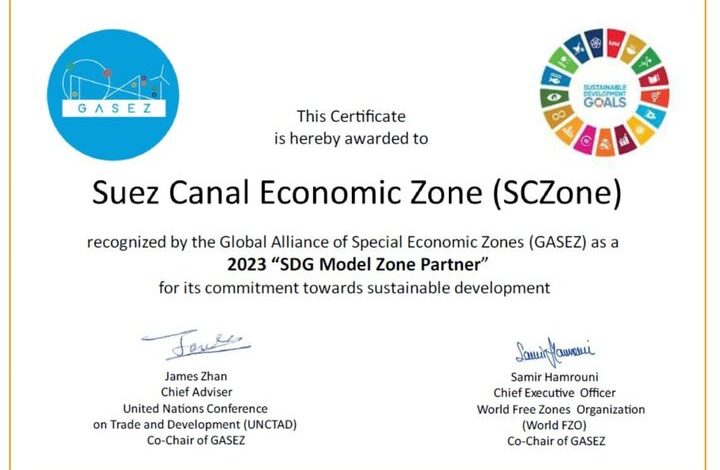 والجدير بالذكر أن التحالف العالمي للمناطق الاقتصادية الخاصة “GASEZ” تم إطلاقه من خلال تعاون مؤتمر الأمم المتحدة للتجارة والتنمية “UNCTAD” مع سبع جمعيات عالمية وإقليمية ووطنية تمثل أكثر من 7000 منطقة اقتصادية خاصة، بهدف تحديث المناطق الاقتصادية الخاصة في جميع أنحاء العالم وتعظيم مساهمتها في أهداف الأمم المتحدة للتنمية المستدامة، وقد كانت المنطقة الاقتصادية لقناة السويس الممثل الوحيد لمصر ضمن قائمة ترشيحات 2023-2024 للمناطق النموذجية لأهداف التنمية المستدامة.