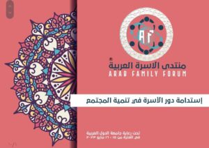 ينظم الإتحاد العربي للتنمية المستدامة والبيئة ويمثله الأستاذ الدكتور أشرف عبد العزيز – أمين عام الإتحاد – رئيس لجنة التنسيق والتعاون بالمكتب التنفيذي لملتقى الإتحادات العربية النوعية بجامعة الدول العربية – المشرف العام على أعمال المجالس المتخصصة بالإتحاد – نائب رئيس شعبة البيئة بالغرفة التجارية بالقاهرة، والإتحاد العام للخبراء العرب ويمثله الأستاذ أحمد بن محمد الجروان – رئيس المجلس العالمي للتسامح والسلام – رئيس المكتب التنفيذي لملتقى الإتحادات العربية النوعية بجامعة الدول العربية، المنتدى العربي “استدامة دور الأسرة في تنمية المجتمع” برئاسة الدكتورة آمال إبراهيم محمد – رئيس مجلس الإسرة العربية للتنمية – إستشاري العلاقات الأسرية – رئيس لجنة المرأة في الإتحاد العربية للتنمية المستدامة والبيئة – رئيس مهرجان المرأة العربية للإبداع ومقرر المنتدى يومي 15، 16 مايو 2023، تحت رعاية جامعة الدول العربية بمقر الجامعة بالقاهرة، برعاية إعلامية لـ “مجلة نهر الأمل”.