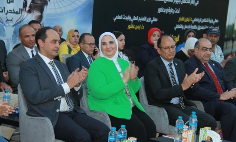 وزيرة التضامن الاجتماعي تشهد فعاليات الاحتفال باليوم العالمي لمكافحة تعاطى المخدرات بمشاركة المتطوعين بصندوق مكافحة الإدمان وطلاب جامعة حلوان