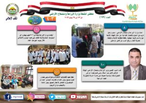 أصدر مركز المعلومات الصوتية والمرئية، التابع لوزارة الزراعة واستصلاح الاراضي، “الانفوجراف الاسبوعي” في نسخته رقم ١٤٩ ، حول الحصاد الاسبوعي لأهم أنشطة الوزارة، خلال الاسبوع الماضي في الفترة من ٢٣ وحتى ٢٩ يونيو الجاري، وذلك بالتعاون مع المكتب الاعلامي للوزارة، كما أصدر المركز ايضا ملخصا بالفيديو، حول انشطة الوزارة خلال نفس الفترة.
