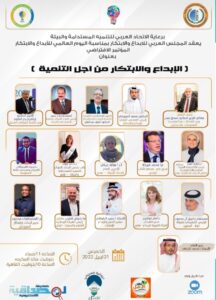 فى اطار الاحتفال باليوم العالمى للابداع والابتكار نظم المجلس العربى للابداع والابتكار برئاسة الدكتور محمد السريحى مؤتمر تحت عنوان ” الابداع والابتكار من أجل التنمية” تحت رعاية الدكتور أشرف عبد العزيز الأمين العام للاتحاد العربى للتنمية المستدامة والبيئة والمشرف العام على أعمال المجالس المتخصصة بالإتحاد
