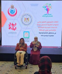 أضافت “أننا نحتاج للعمل مع كافة الشركاء في الحكومة والمجتمع المدني، خاصة في القطاع الصحي والكوادر الطبية للوصول لخدمات تراعي معايير الجودة وتتناسب مع نوع وشدة الإعاقة، والعمل على إتاحة وتهيئة المستشفيات، وكذلك تدريب مقدمي الخدمات واستحداث وتطوير أدوات مناسبة للرعاية الصحية للأشخاص ذوي الإعاقة، والعمل على رقمنة الخدمات الصحية وتوفير المعلومات، ورصد كافة البيانات والاحصائيات المتعلقة بالجوانب الصحية لهم، فضلًا عن الاستعداد للكوارث الأوبئة والتغيرات المناخية من خلال تعاون كافة الجهات والشركاء، والمتابعة الدورية لذلك”.