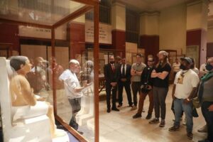 وكانت في استقبالهم الأستاذة صباح عبد الرازق مدير عام المتحف المصري بالتحرير ، واصطحبتهم في زيارة داخل قاعات المتحف المختلفة.