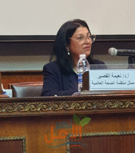 وأكدت الدكتورة نعيمة القصير ممثلة منظمة الصحة العالمية لإقليم شرق المتوسط أن الدراسات التى تقوم بها منظمة الصحة العالمية فى مجال المناخ من منطلق إهتمامها بتلك القضايا وتأثيرها على الصحة وتناقش المنظمة فى إجتماعها المقبل النظم الصحية والانبعاثات الكربونية فتعريف مفهوم الصحة بِأنَّها حالة الإنسان دون أيّ مَرَض أو داء، وهي تشمِل الصِّحة العقليّة والاجتماعية والبدنية وتوفير النظم الصحية لكل انسان بدون تمييز بسبب جنس أو عنصر أو دين .