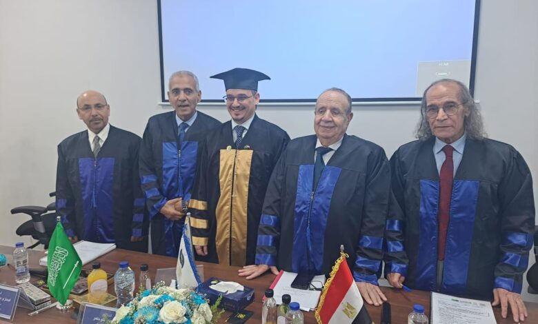 وقد تكونت لجنة المناقشة والحكم من الدكتور/ محمد محمد إبراهيم أستاذ إدارة الأعمال -رئيس جامعة المنوفية الأسبق “رئيسًا للجنة”والدكتور/ عبد السلام محمود أبو قحف أستاذ إدارة الأعمال الدولية بكلية التجارة – جامعة الإسكندرية “عضوًا ومشرفًا” والدكتور عبد العزيز على حسن أستاذ ورئيس قسم إدارة الأعمال وكيل كلية التجارة للدراسات العليا والبحوث الأسبق “عضوًا” والدكتور فيصل بن عبد الكريم الخميس أستاذ إدارة الأعمال المشارك بكلية الإقتصاد والإدارة- عميد أعضاء هيئة التدريس الأسبق بجامعة القصيم.