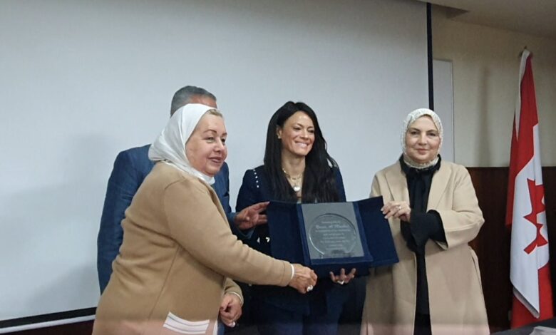 وان لكل انسان له شخصية مميزة عن الاخر فليظل نفسه بدون تزييف ويعطي طاقته وتركيزه في العمل الذي يعمله في وقته الحاضر ويستثمر في نفسه لتطويرها دائما فالعلم لا يقف عند حد معين وأوضحت في النهاية اهمية الاتصال مع الاشخاص مهما كانت درجاتهم العلمية وتشجيع العطاء للغير والثقة بالنفس وأهميةالذكاء الاجتماعي وفي نهاية الندوة قامت الدكتوره امال الغزاوي باهداء الدكتوره رانيا المشاط درع تكريما لها وكذلك