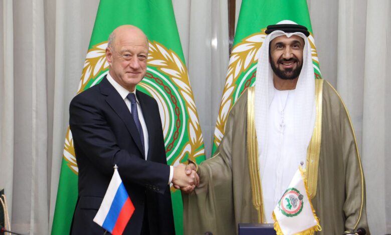 ويتفقان على آليات لتعزيز التعاون المؤسسي بين البرلمان العربي والبرلمان الروسي