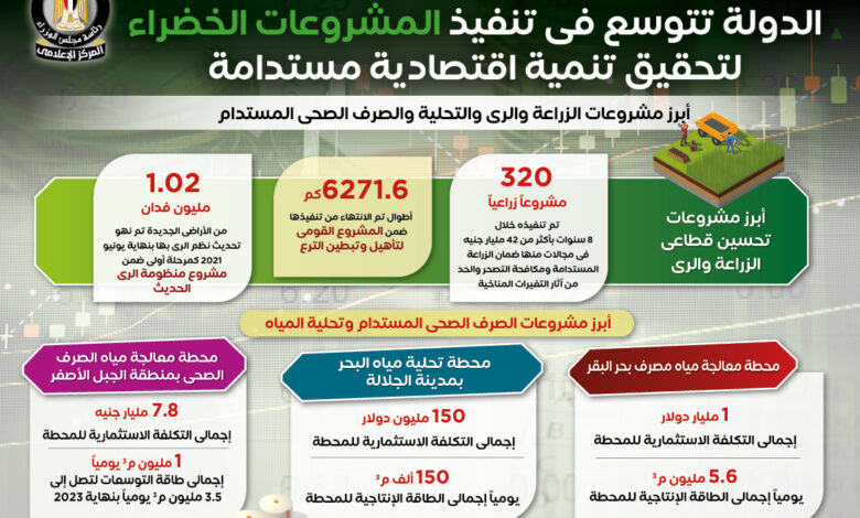 الدولة تتوسع في تنفيذ المشروعات الخضراء لتحقيق تنمية اقتصادية مستدامة