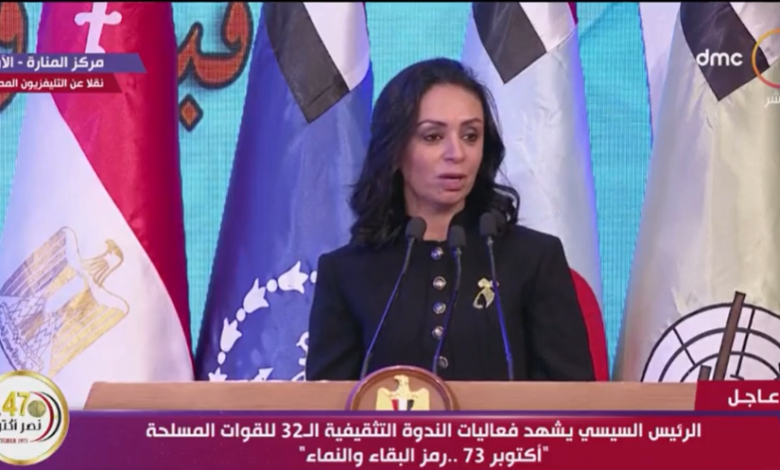 خلال كلمتها فى فعاليات الندوة التثقيفية الـ 32 للقوات المسلحة “أكتوبر 73 .. رمز البقاء والنماء” بحضور السيد الرئيس عبد الفتاح السيسى رئيس الجمهورية :