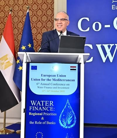 وأضاف سيادته أنه وفى ضوء التوصيات الخاصة بتمويل قطاع المياه – الصادرة عن الإجتماع الوزاري للإتحاد من أجل المتوسط الذى عقد بالقاهرة مؤخرا – تشكل خارطة طريق عملية لسد فجوة الإستثمار في منطقة حوض المتوسط، وتعكس تحولاً في النهج نحو بناء منظومة استثمارية ديناميكية تُفعّل دور البنوك التجارية الوطنية، ومؤسسات التمويل التنموي، وآليات التمويل المدمج بما يشمل الشراكات بين القطاعين العام والخاص (PPPs)، ويرتكز هذا النهج في جوهره على مبادئ الترابط بين المياه والطاقة والغذاء والأنظمة البيئية (WEFE Nexus)، من أجل بناء قطاع مائي مرن مناخياً ومستدام مالياً .