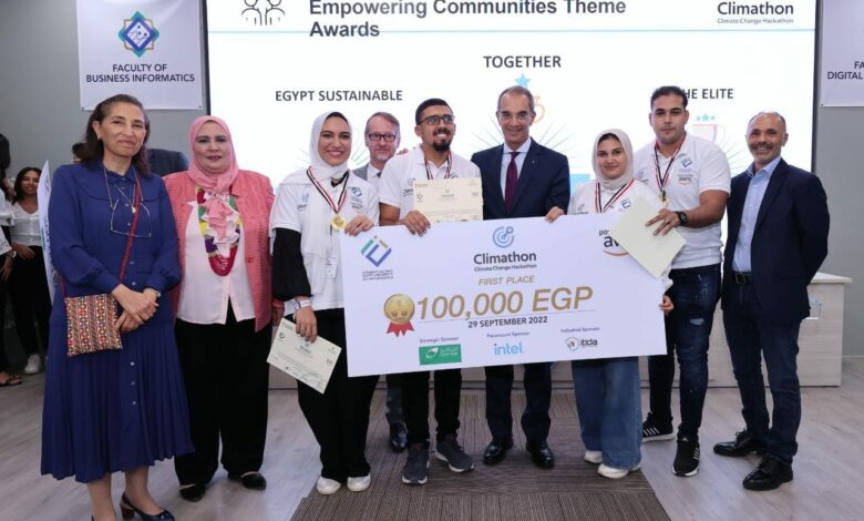 جاء ذلك فى كلمة الدكتور/ عمرو طلعت خلال فعاليات حفل ختام أعمال مسابقة هاكاثون التغير المناخى Climathon الذى نظمته جامعة مصر للمعلوماتية بالتعاون مع شركة أمازون ويب سيرفيس AWS، تحت رعاية وزارتى الاتصالات وتكنولوجيا المعلومات، والتعليم العالى والبحث العلمى؛ حيث يهدف الهاكاثون إلى ابتكار حلول تقنية وإنتاج نماذج أولية لأفكار خلاقة باستخدام تكنولوجيا المعلومات للحد من مخاطر التغير المناخى وتأثيراته السلبية على كوكب الأرض؛ يأتى ذلك تزامنا مع استعداد مصر لاستضافة مؤتمر الأطراف لاتفاقية الأمم المتحدة لتغير المناخ “COP 27” بمدينة شرم الشيخ فى نوفمبر المقبل.