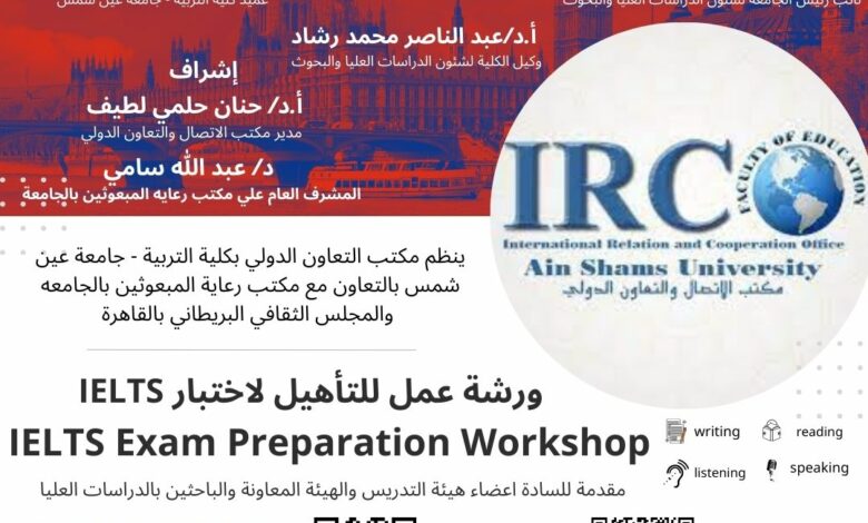 غدا ورشة عمل التأهيل لاختبار الأيلتس بتربية عين شمس