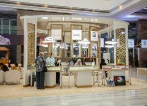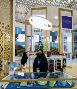 ويكون الزوار عند دخولهم إلى بوابة المعرض الرئيسية على موعد مع عالم خيالي من السحر يتجلى في القطع المعروضة التي تجمع بين الجمال الفريد وبراعة الصنع وتخبئ كل قطعة منها حكاية مميزة تحث الزوار على استكشافها، حيث يقف العشرات من الزوار الباحثين عن القطع الفنية من أجل انتقاء ما يروق لهم وإرضاء رغباتهم، من الذوق الإماراتي الرفيع الذي تقدمه 20 مصممة إماراتية حرصن على المشاركة في هذه المبادرة لإبراز إبداعاتهن الحرفية والتسويقية في صناعة وصياغة المجوهرات والأحجار الكريمة وعرض أحدث مجموعاتهن المبتكرة من المجوهرات الذهبية والألماسية حصريا لزوار النسخة الخمسين من الشرق الأوسط للساعات والمجوهرات.