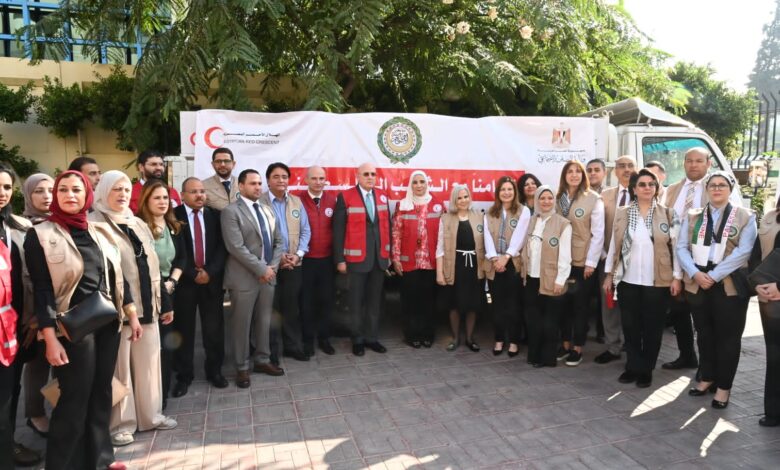 القباج وأبو غزالة يدشنان قافلة المساعدات الإنسانية المقدمة من مجلس وزراء الشئون الاجتماعية العرب إلى قطاع غزة عبر الهلال الأحمر المصري