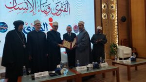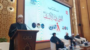 و”بناءً على هذه التحديات المشتركة أعلن في هذه الندوة المباركة جاهزية دار الإفتاء المصرية بالانخراط المؤسسي الجاد في كل هذه البرامج التي من شأنها أن تحافظ على الإنسان المصري وتستعيد دوره المحوري في الإسهام الحضاري والعمراني في العالم”