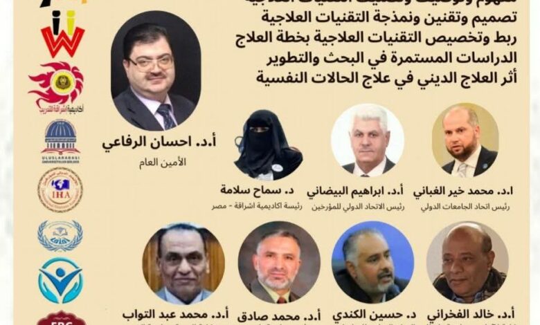 تنظم منظمة الدعم النفسي بألمانيا، بالتعاون مع أكاديمية إشراقة للتدريب اتحاد الجامعات، واتحاد المؤرخين، مؤتمرًا علميًا رفيع المستوى تحت عنوان: “التقنيات العلاجية النفسية الدينية”