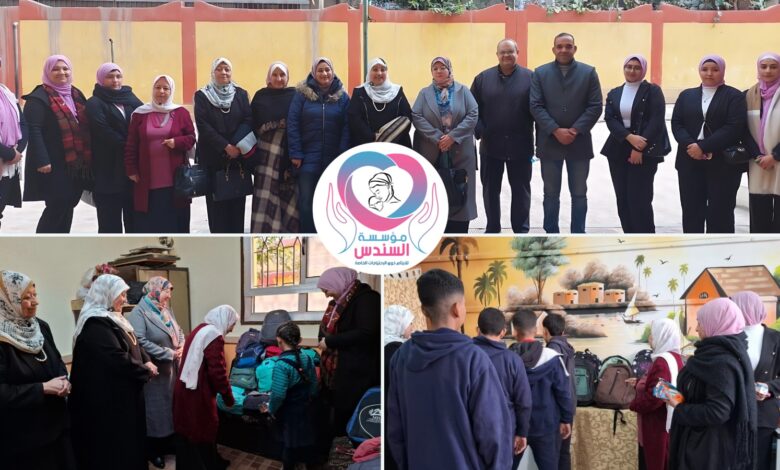 مؤسسة السندس للأيتام ذوى الاحتياجات الخاصة توزع شنط المدارس والمستلزمات الدراسية على الطلاب الأيتام بمدارس غرب مدينة نصر