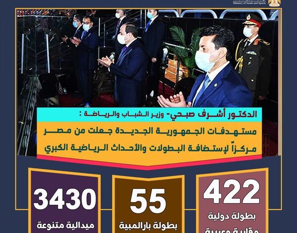 مصر استضافت (422) بطولة دولية وقارية وعربية، وتحقيق (3430) ميدالية متنوعة