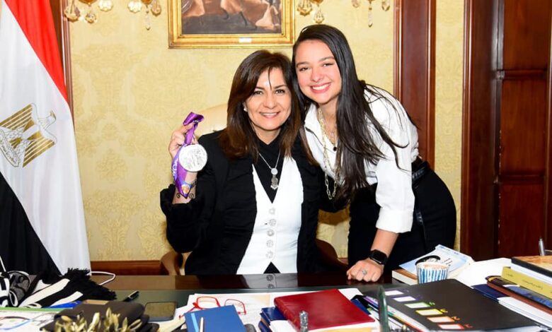 وزيرة الهجرة تستقبل إحدى عضوات مركز “ميدسي” أول مصرية وعربية حاصلة على الميدالية الفضية في بطولة العالم للرماية