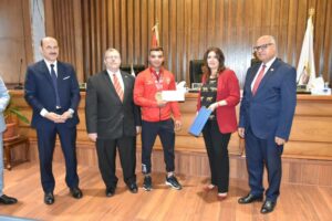 كرم مجلس جامعة مدينة السادات برئاسة الدكتورة شادن معاوية، رئيس الجامعة، يوم الأربعاء الموافق ٣١ مايو، وبحضور الدكتور شريف محمد على، نائب رئيس الجامعة لشئون التعليم والطلاب، والدكتور خالد جعفر، نائب رئيس الجامعة لشئون خدمة المجتمع وتنمية البيئة، وعمداء الكليات، الطلاب الحاصلين على الميدالية الذهبية في المصارعة الحرة والرومانية ببطولة أفريقيا.