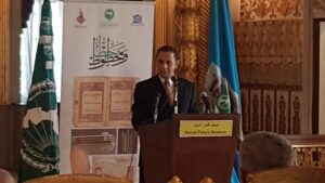 وأكد مدير العام للمنظمة العربية للتربية والثقافة والعلوم خلال كلمته “يكفي الخط العربي روعة ومهابة وجلال أنه نزل به القرآن الكريم،وهذا المعرض يأتي ضمن العمل العربي الثقافي المشترك،وذلك لحماية وصون التراث العربي،حيث يرتبط الخط العربي في الأذهان بالكتابات الأولي التي حملها الينا المخطوط العربي،وفي مقدمتها الكتابات القرآنية “الرقية”، والتي كانت تكتب بالخط الحجازي المكي والمدني “