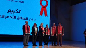 وكرمت د. نيفين القباج وزيرة التضامن الاجتماعي ونائب رئيس جمعية الهلال الأحمر المصري متطوعي الهلال الأحمر المصريين، الأكثر نشاطًا في الأزمات خلال عام 2023