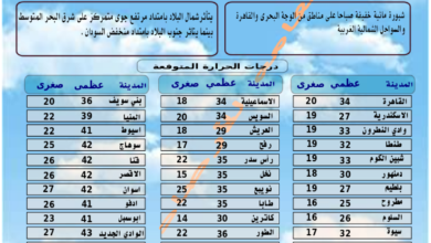 امل صليب من هيئة العامة الارصاد الجوية طقس الخميس نهارا شبورة خفيفة صباحا وطقس مائل للحرارة على القاهرة والوجة البحرى…