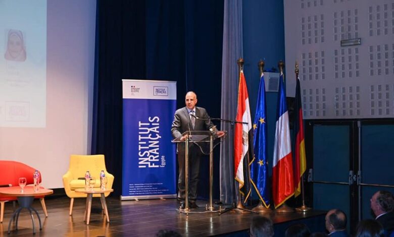 المناخية والمنعقدة تحت عنوان “موارد مصر المائية وتغير المناخ .. السياسات والتكنولوجيا والحلول المجتمعية” تحت رعاية السفارتين الألمانية والفرنسية في مصر بمقر المعهد الفرنسي بالقاهرة .