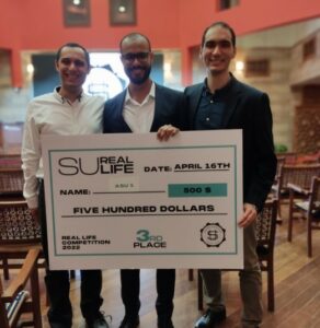 فاز طلاب كلية الهندسة بجامعة عين شمس بالمركز الثالث في مسابقة real life competition 2022 ، تحت رعاية ا. د محمود المتيني رئيس الجامعة ، ا. د عبد الفتاح سعود نائب رئيس الجامعة لشئون التعليم والطلاب، ا. د عمر الحسيني عميد كلية الهندسة ، ا. د مصطفى رفعت وكيل الكلية لشئون التعليم والطلاب، ونظمتها الجامعة الامريكية.