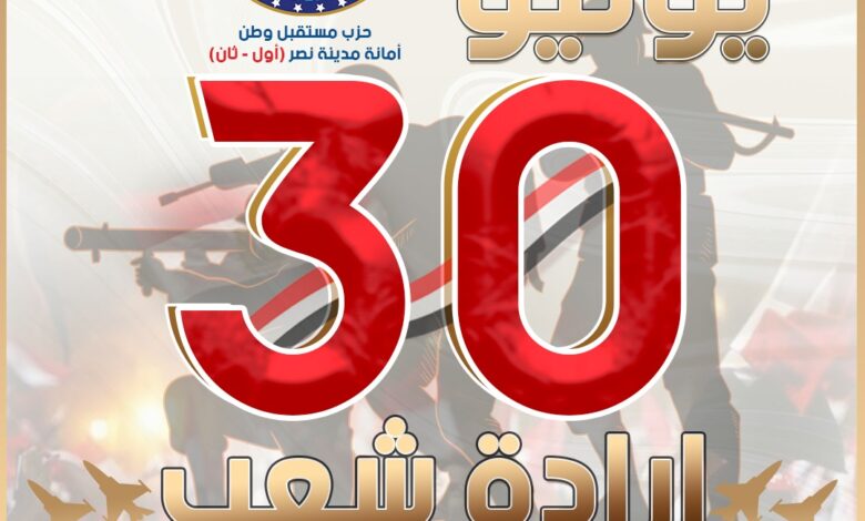 حزب مستقبل وطن أمانة مدينة نصر ( أول وثان ) يُهنىء الشعب المصري بذكرى ثورة 30 يونية تقرير :…