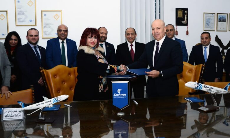 بحضور الفريق محمد عباس وزير الطيران المدنى توقيع بروتوكول تعاون بين الشركة القابضة لمصر للطيران واتحاد المستثمرات العرب شهد…