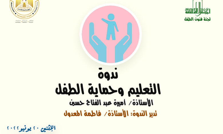 أكمل القراءة »ندوة “التعليم وحماية الطفل” – بقاعة الفنون بالمجلس الأعلى للثقافة تحت رعاية الأستاذة الدكتورة إيناس عبد الدايم وزيرة الثقافة والأستاذ…