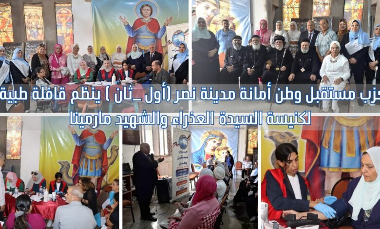 حزب مستقبل وطن أمانة مدينة نصر أول وثان ينظم قافلة طبية لكنيسة السيدة العذراء والشهيد مارمينا