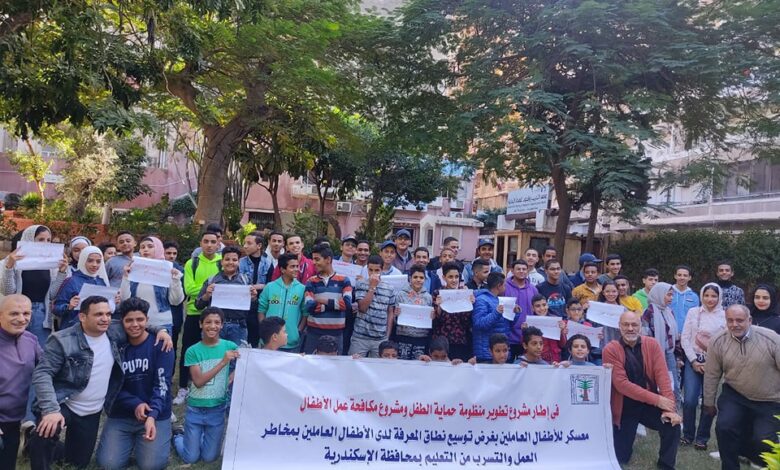“الطفولة والامومة” ينظم معسكرًا بالإسكندرية لرفع وعى الأطفال بمخاطر العمل فى سن مبكرة والأضرار التى تلحق بهم نتيجة التسرب من…