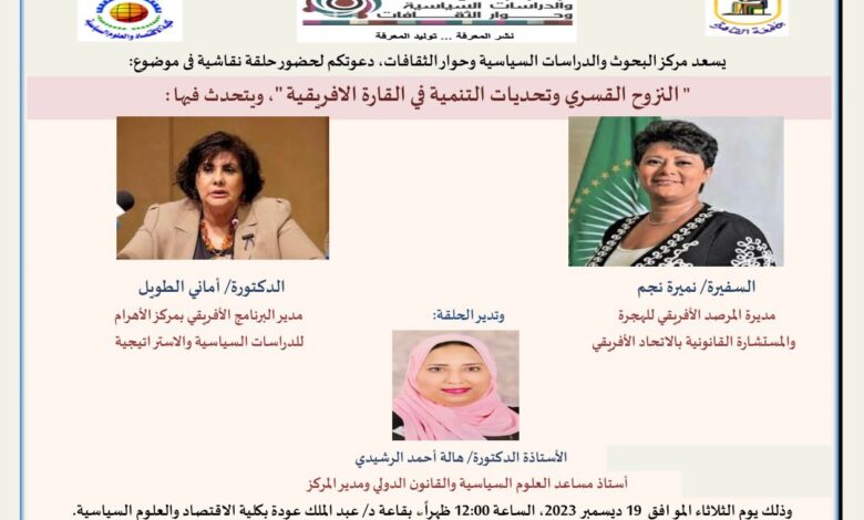 نميرة نجم في جامعة القاهرة غدا للحديث عن النزوح القسري والتنمية بأفريقيا تستضيف جامعة القاهرة السفيرة د. نميرة…