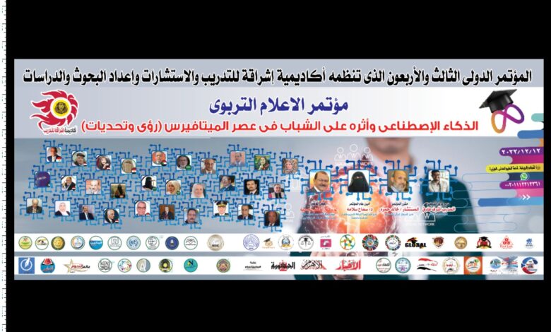 أكمل القراءة »المؤتمر الدولى الثالث والاربعون الذى تنظمه اكاديمية اشراقة للتدريب والاستشارات بعنوان: الاعلام التربوى والذكاء الاصطناعى واثره على الشباب فى عصر…