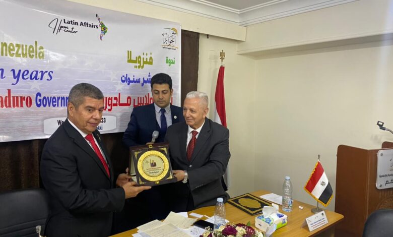 الحوار وسفارة فنزوريل ينظمان ندوة بمرور ١٠ سنوات على رئاسة مادورو بحضور سفراء امريكا اللاتينية نظم مركز الحوار للدراسات السياسية…