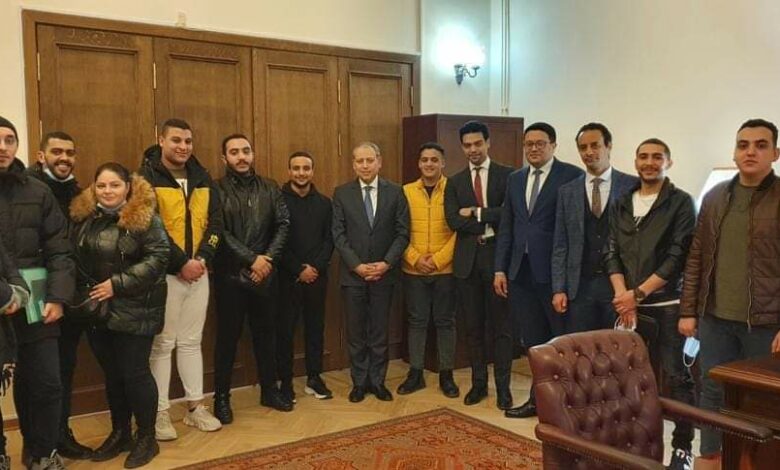 سفير مصر في موسكو يلتقي مجموعة من المواطنين الذين غادروا أوكرانيا عبر الأراضي الروسية