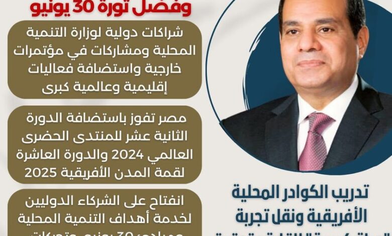 أكمل القراءة »بدعم من الرئيس السيسى وفضل ثورة 30 يونيو شراكات دولية لوزارة التنمية المحلية ومشاركات في مؤتمرات خارجية واستضافة فعاليات إقليمية…